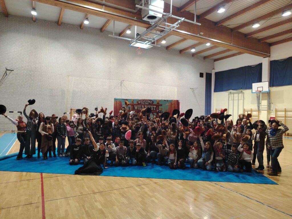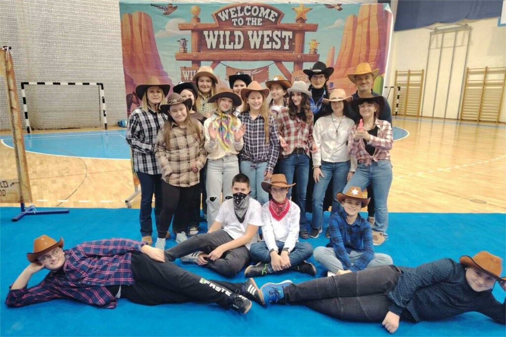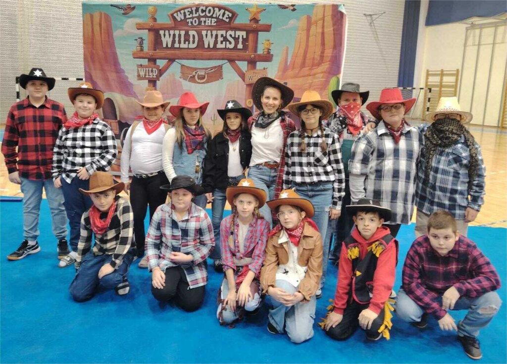 U našoj školi jučer je zavladala prava kaubojska atmosfera! Učenici, učitelji i djelatnici su se na jedan dan pretvorili u vesele kauboje i kaubojke te uživali u glazbi, plesu i dobroj zabavi.