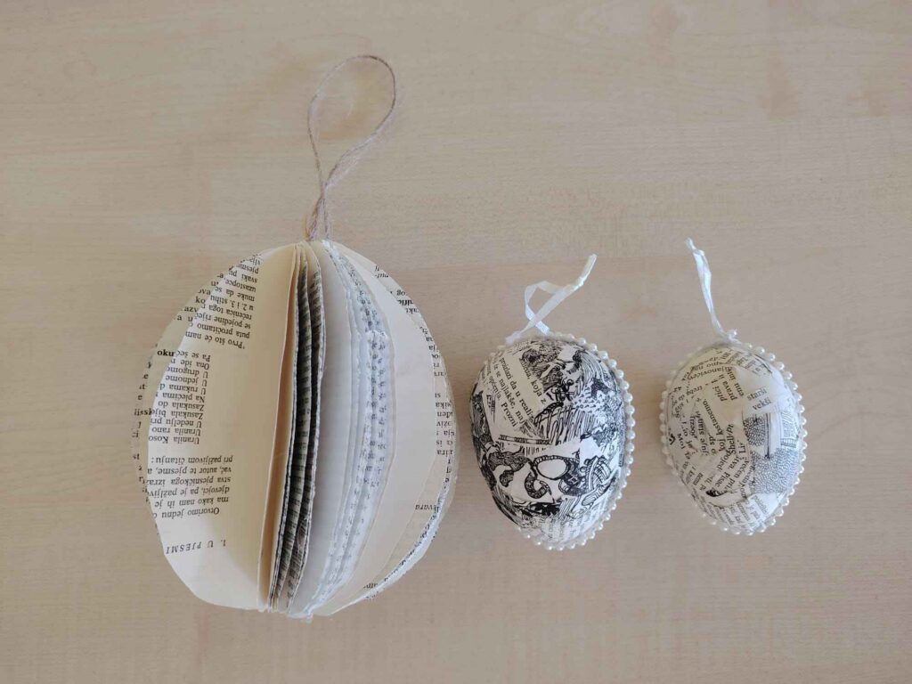 Stranice starih knjiga poslužile su kao materijal za izradu i ukrašavanje uskrsnih pisanica tehnikom dekupaž. Učenici su s puno mašte i strpljenja izrezivali zanimljive motive i pažljivo ih lijepili na pisanice, stvarajući jedinstvene ukrase.